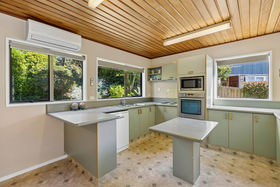 The separate kitchen connects to the open-plan dining and lounge area"pass meals through the convenient servery or walk through to the heart of the home. From here, sliding doors lead out to a spacious deck, perfect for relaxing or entertaining, and onward to a private, established garden and lawn.